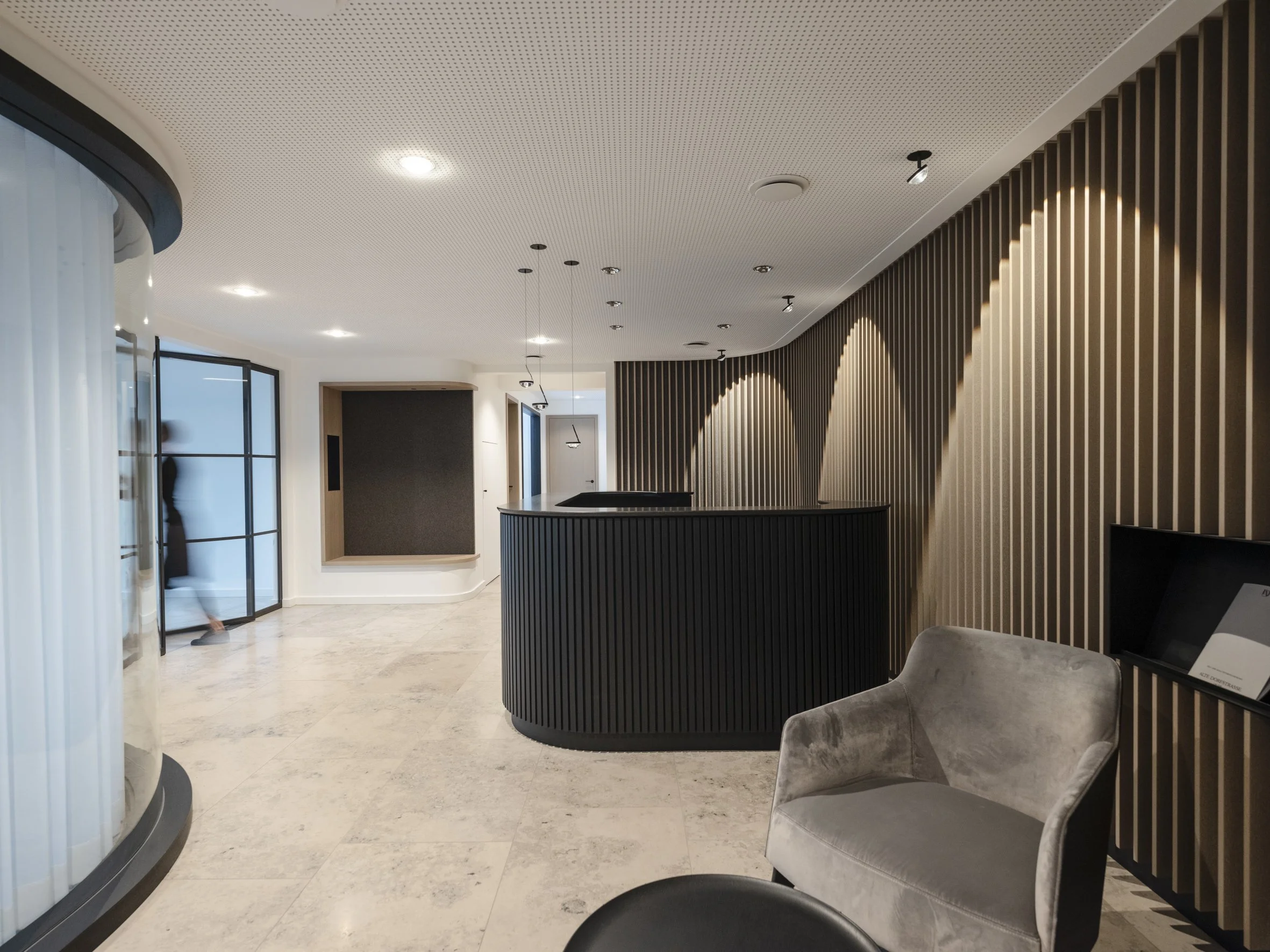 The shared passion for natural materials and the meticulous attention to detail have profoundly influenced the design and development of office and conference rooms, reception and staff areas.