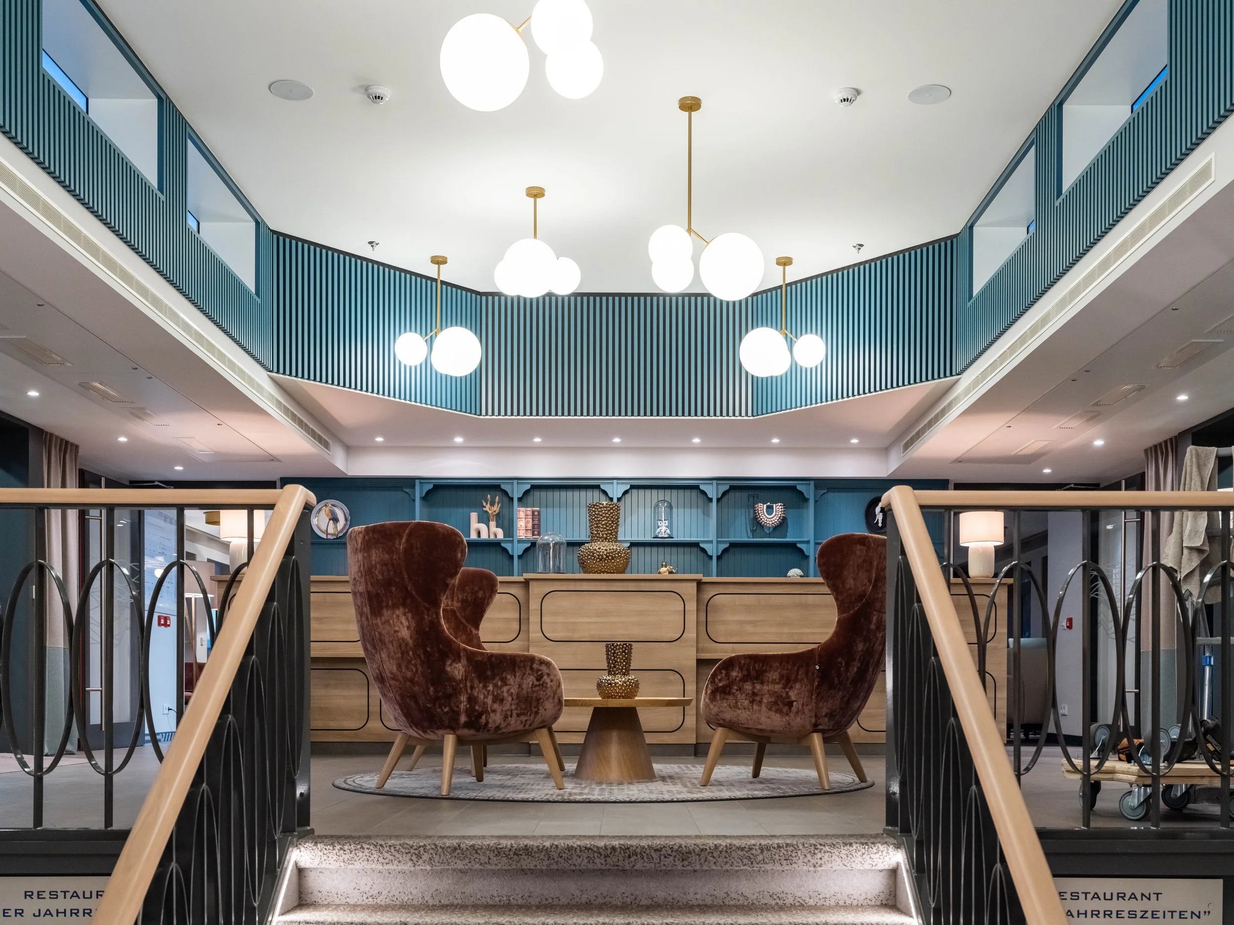 The interior design concept follows the idea of a boutique hotel on the water - personal, stylish and with a clear reference to the ship's cruise areas. Materials, decorative elements and specially curated works of art pick up on cultural and scenic impressions and translate them into a warm, detailed interior design.